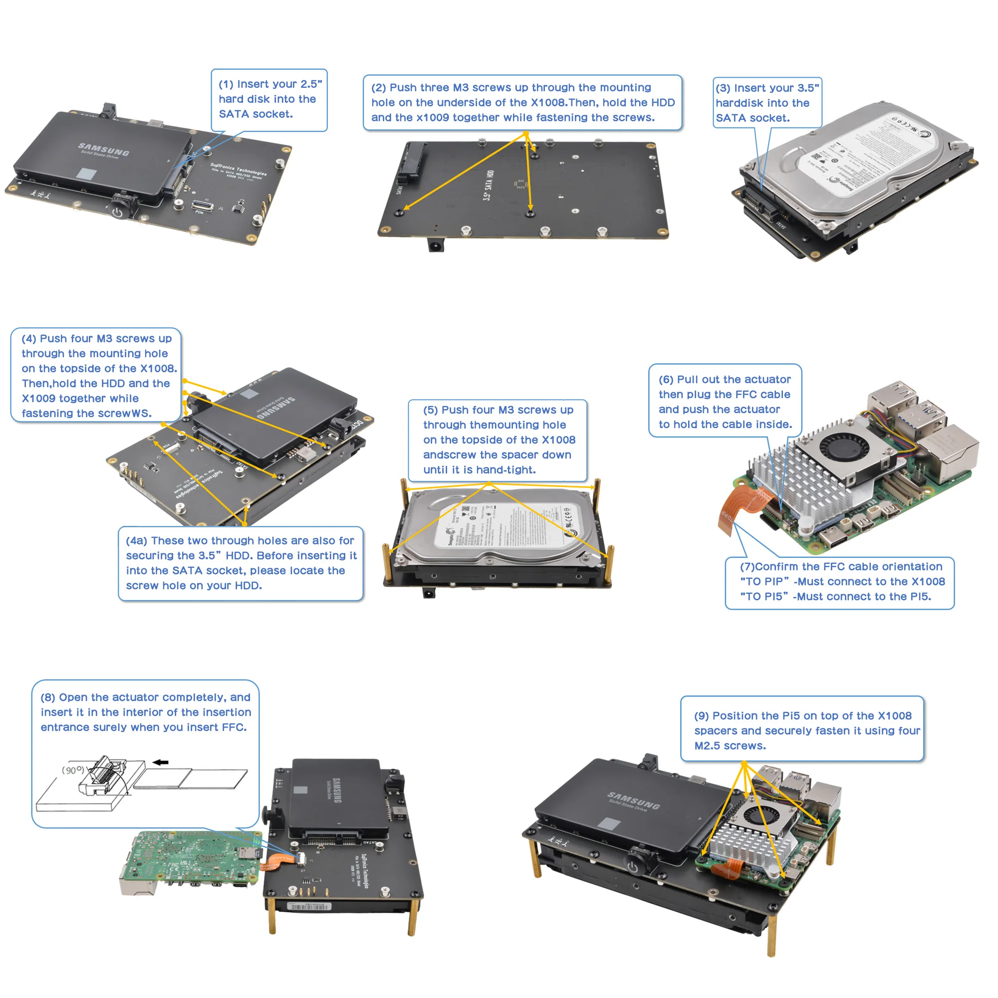 Custom X1008 PCIe to 2.5" SATA HDD/SSD+3.5" SATA HDD Shield for Pi 5 (NOT Support Boot from HDD/SSD)