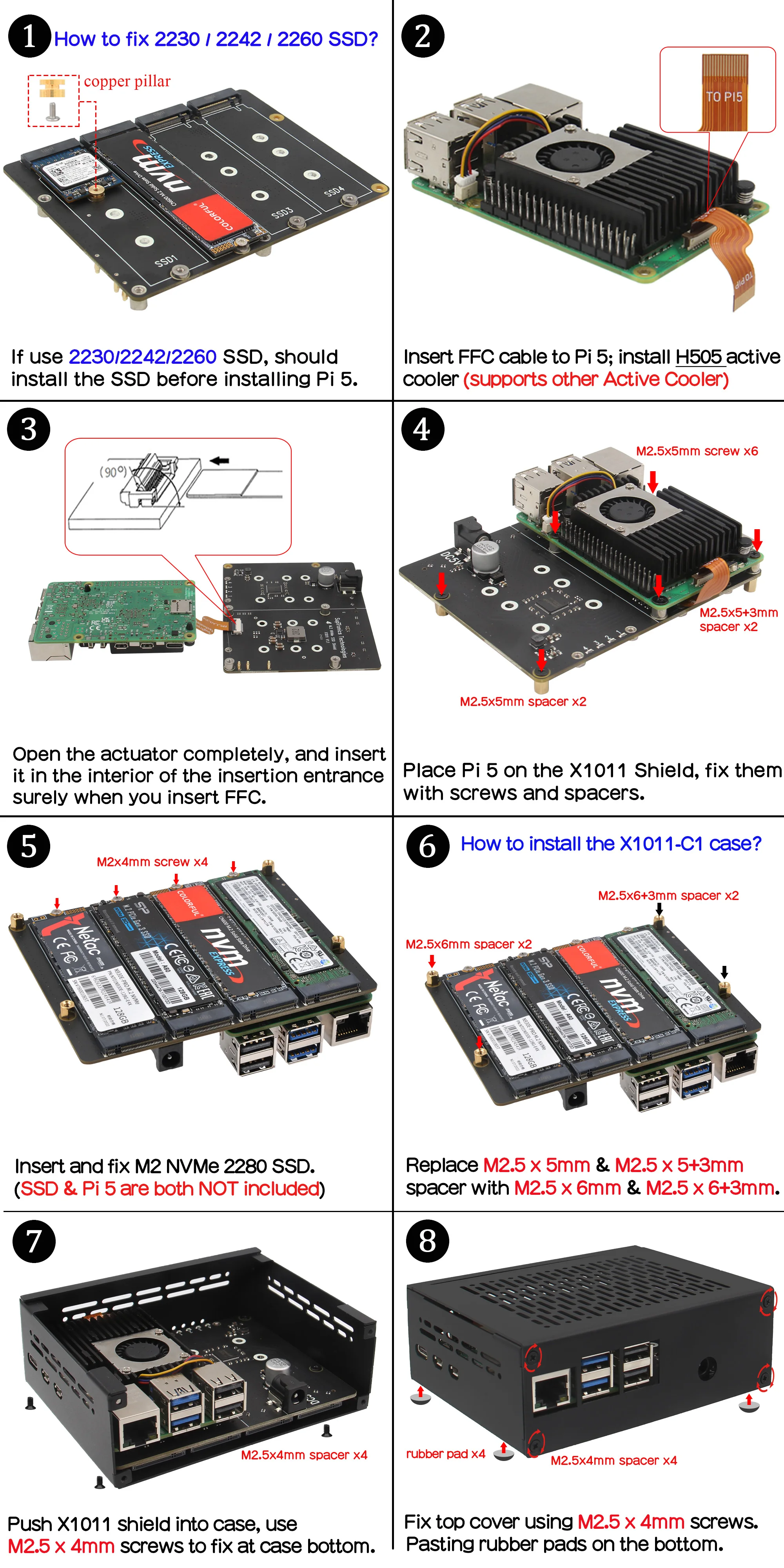 Raspberry Pi 5, X1011board,Active Cooler are all NOT included in the packing list.