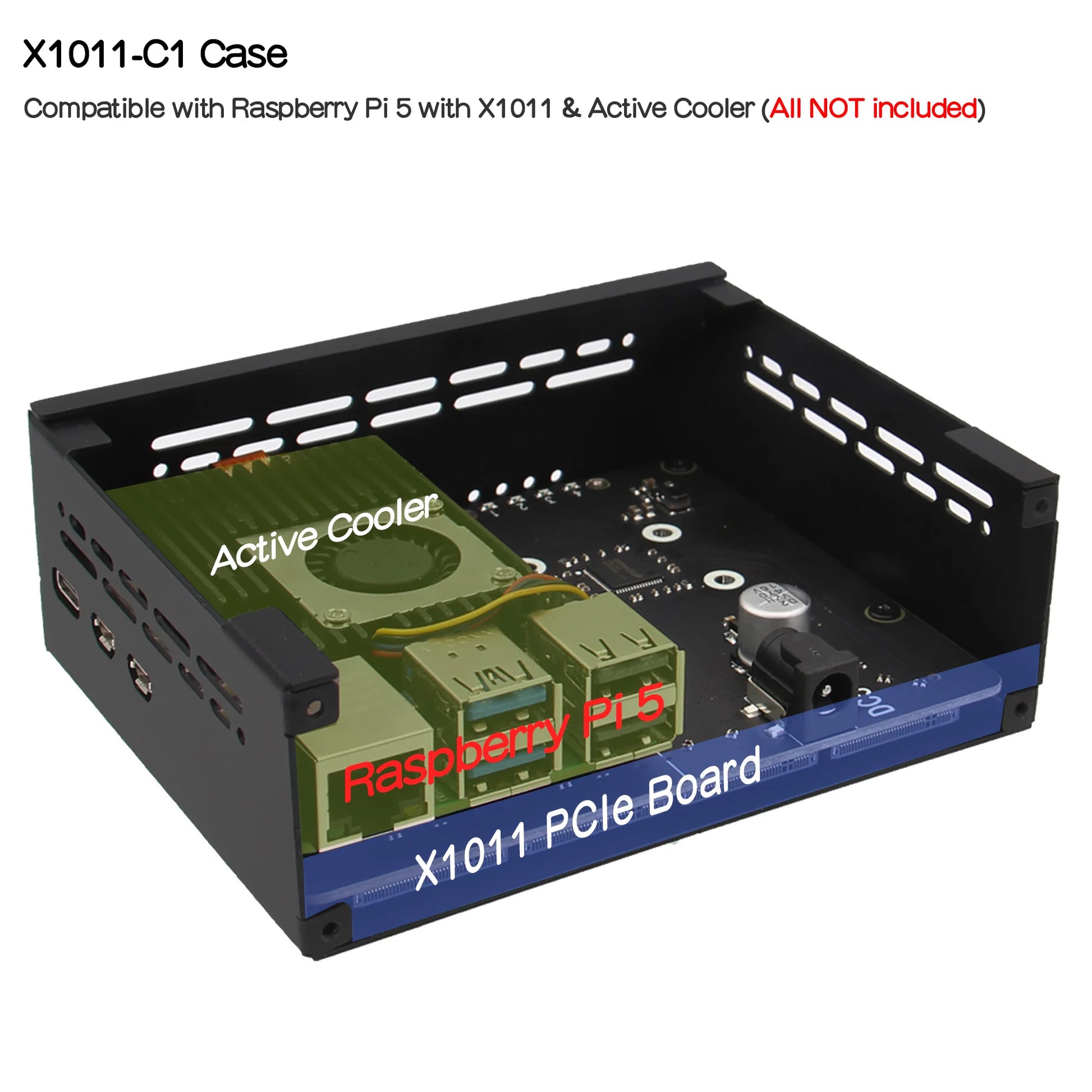 X1011-C1 is a metal case only. It is special designed for Raspberry Pi 5 with X1011 board, also compatible with official active cooler and Third-party active cooler.