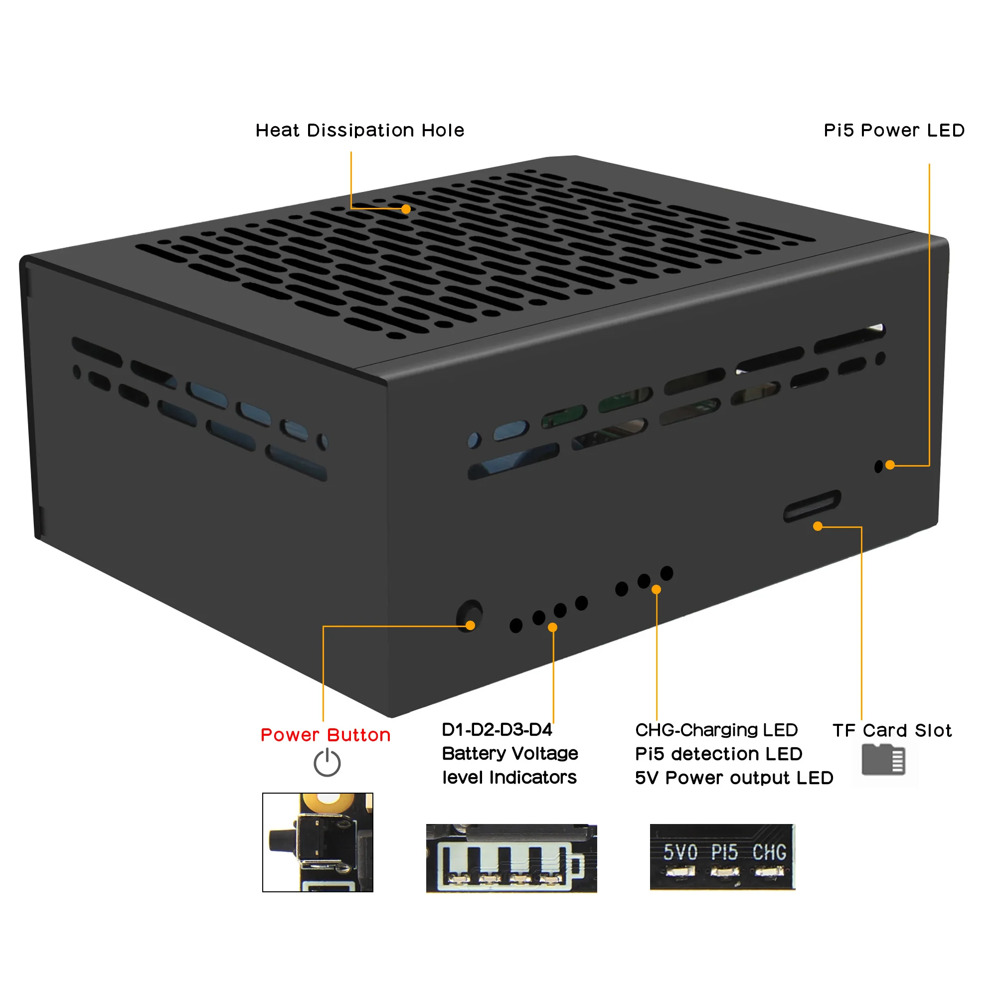 X1201-C1 is a metal case only. It is special designed for Raspberry Pi 5 with X1201 UPS, also compatible with official active cooler/X1000/X1001/X1003/X1004/M901.