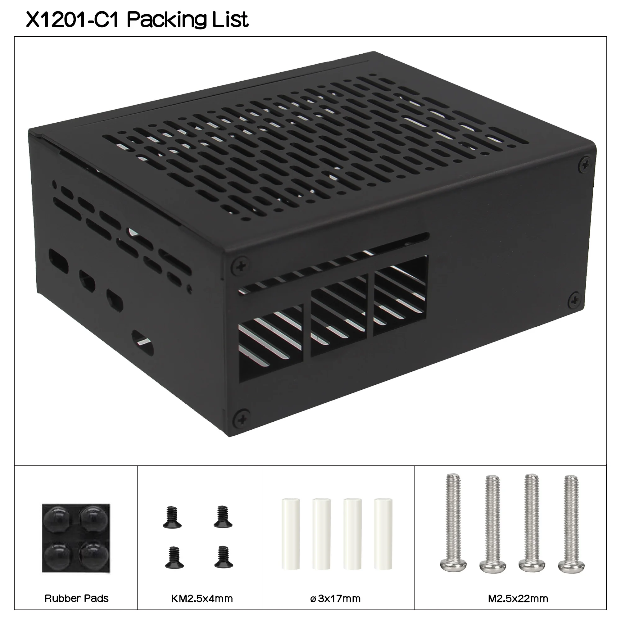Raspberry Pi 5, battery, X1201 UPS, X1000, X1001, X1003, X1004, M901 are all NOT included in the packing list.