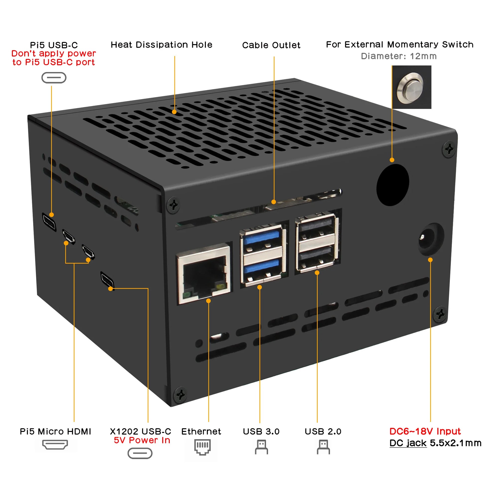 X1202-C1 is a metal case only. It is special designed for Raspberry Pi 5 with X1202 ups, also compatible with official active cooler/X1000/X1001/X1003/X1004/M901.