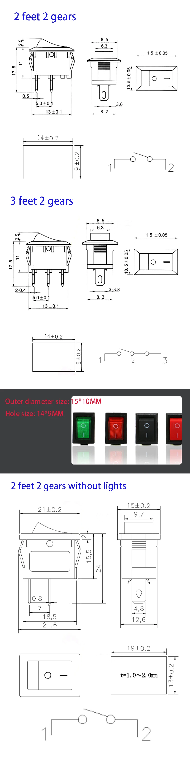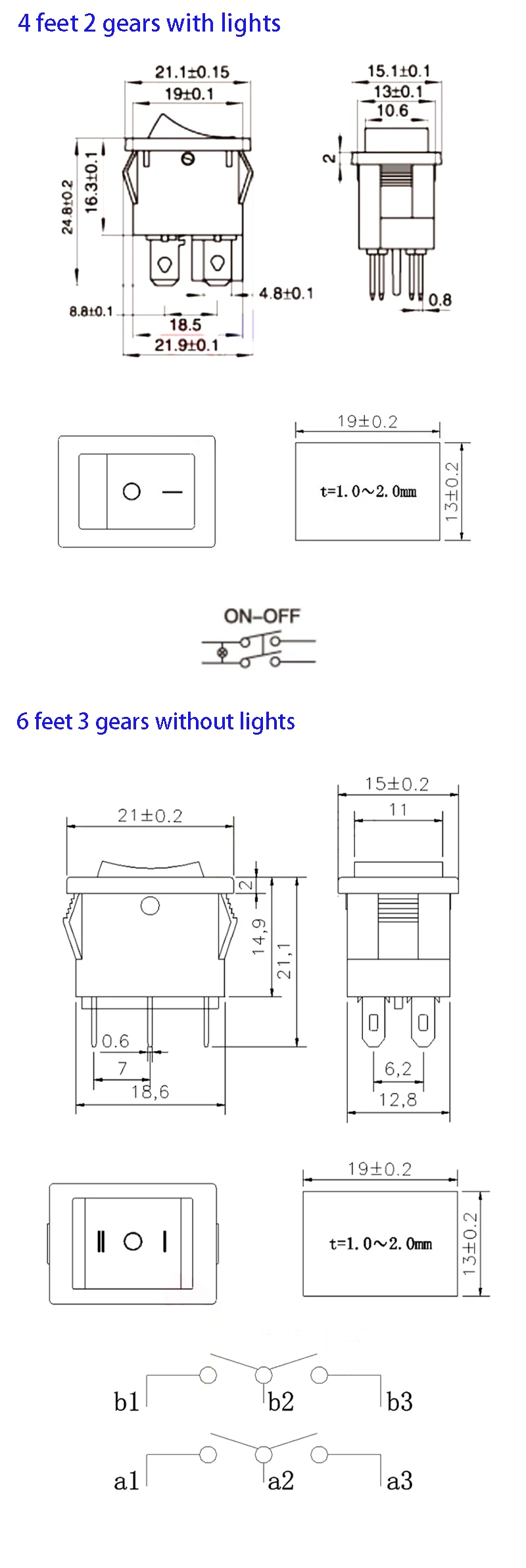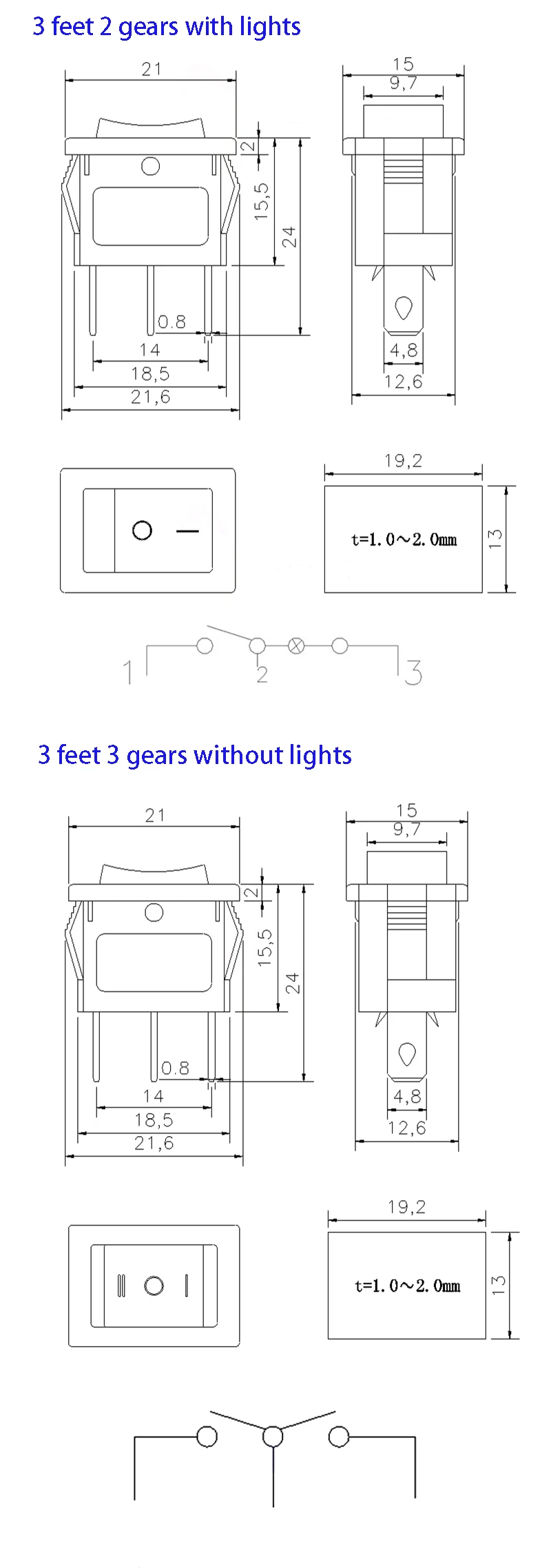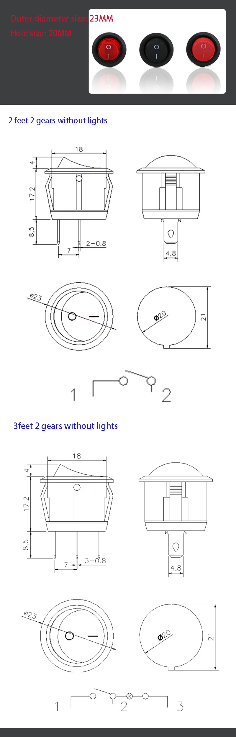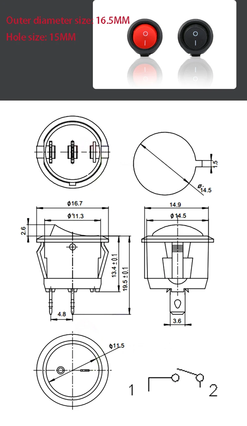 10pcs XL601 series ship type/round rocker power switch button switch accessories 2/3/4/6 feet with light