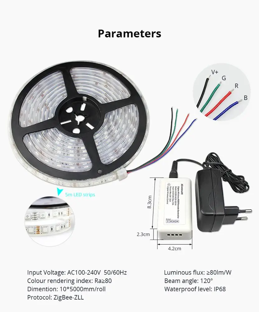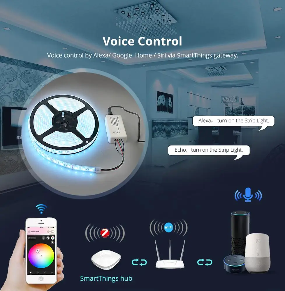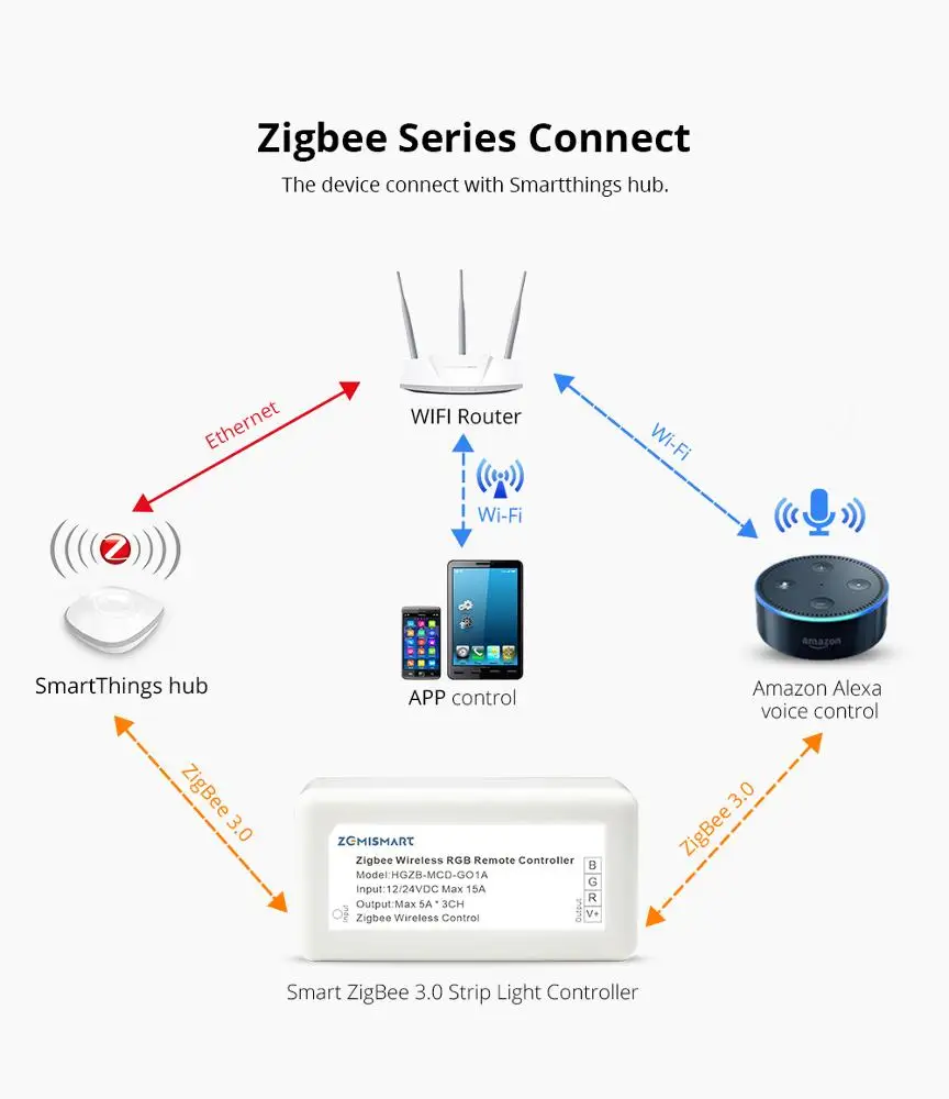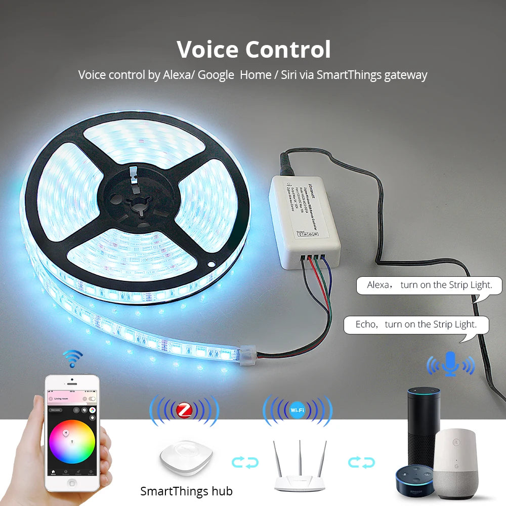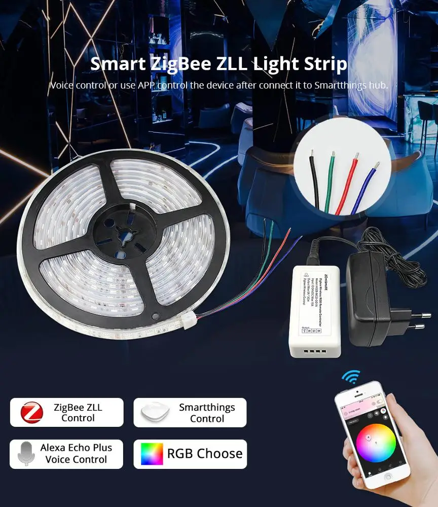 Custom Zigbee ZLL Driver With 5M LED Strip RGB Low Voltage Control by Echo Plus Directly zigbee LED Strip Manufacturer