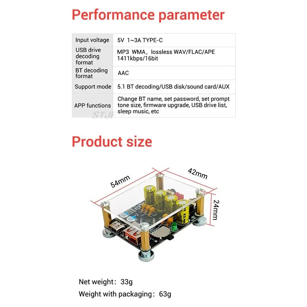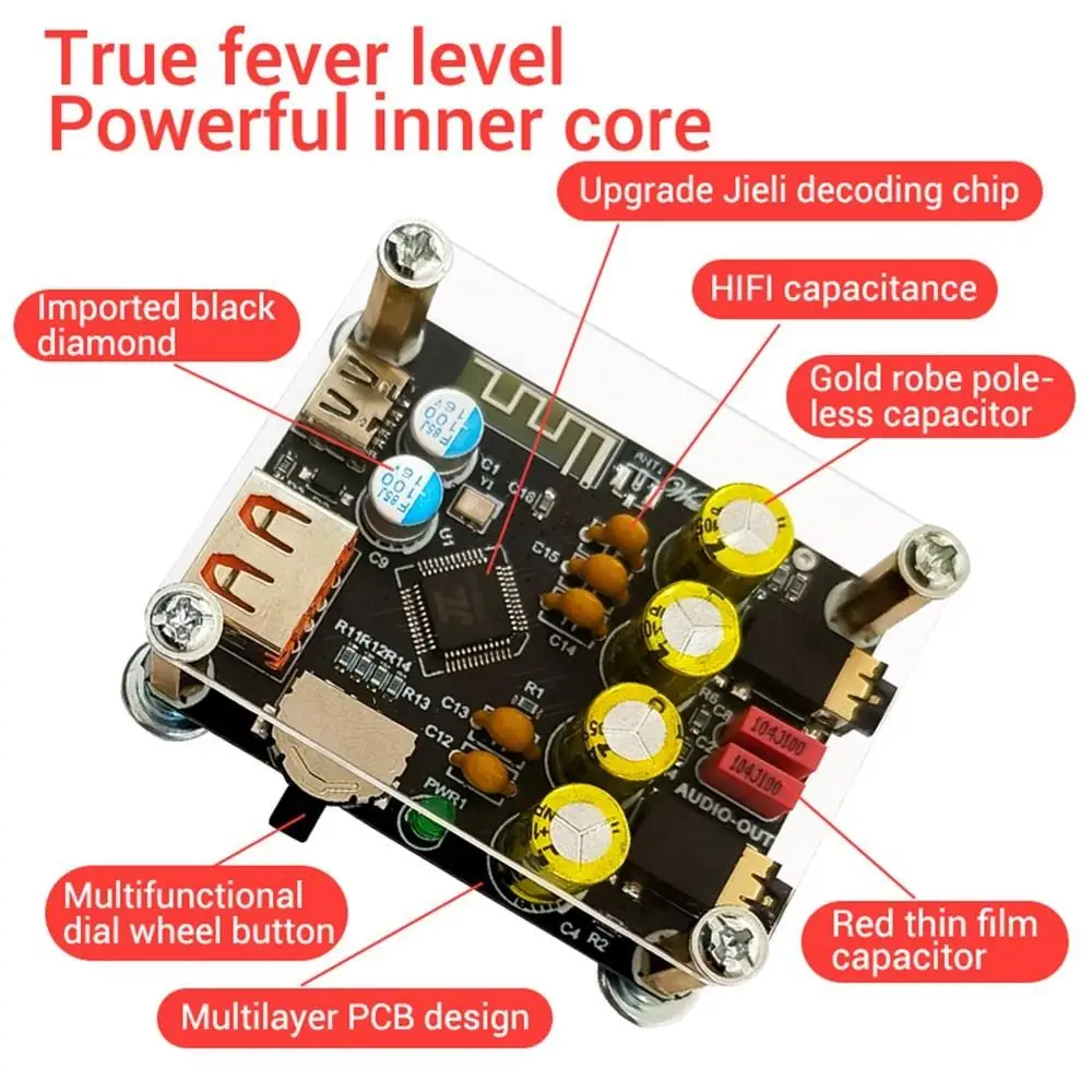 ZK-PT2 Lossless Fever HIFI 5.1 Bluetooth USB Decoding Board Player Audio Receiver Audio Amplifier Board with Shell