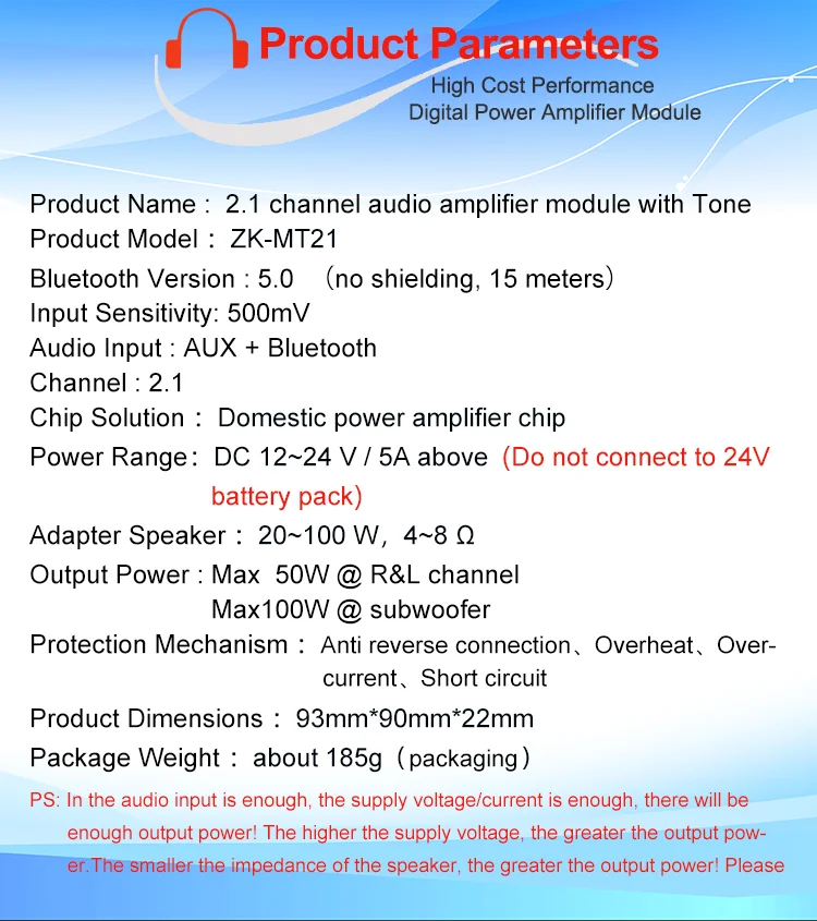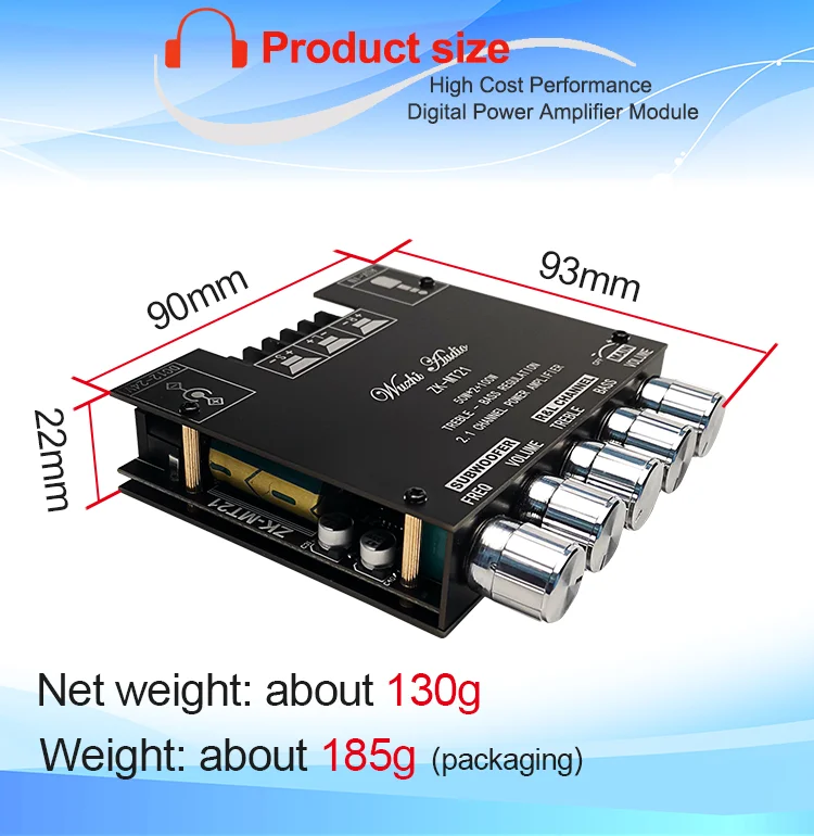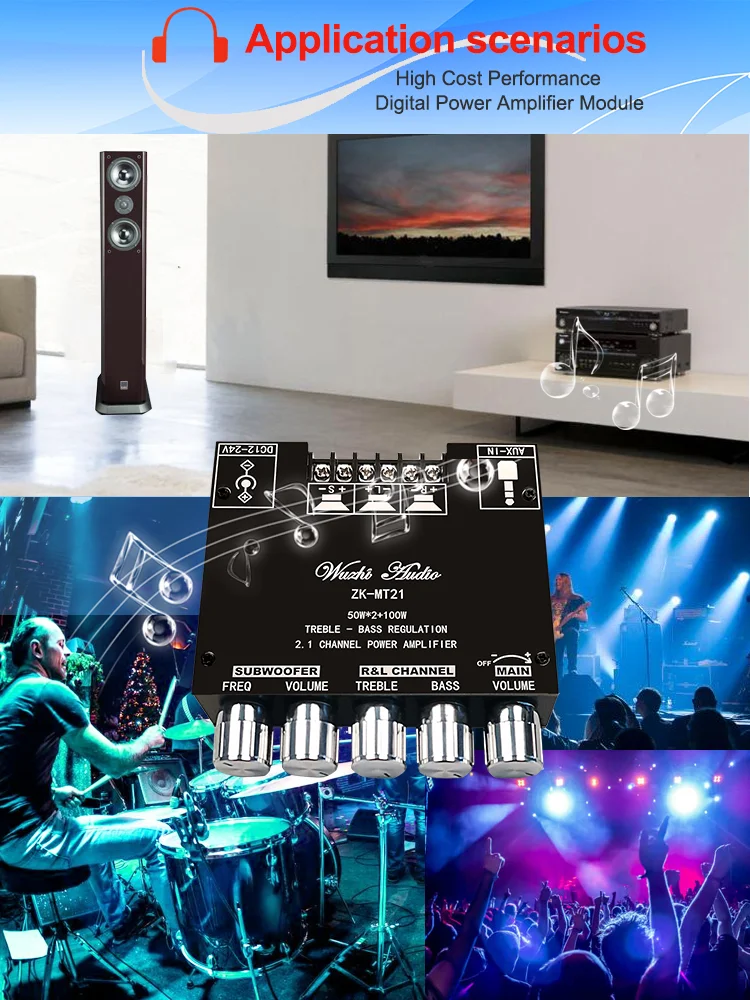 customized 1Pcs ZK-MT21 Bluetooth 5.0 Subwoofer amplifier board 50WX2 + 100W 2.1 power audio amplifier board
