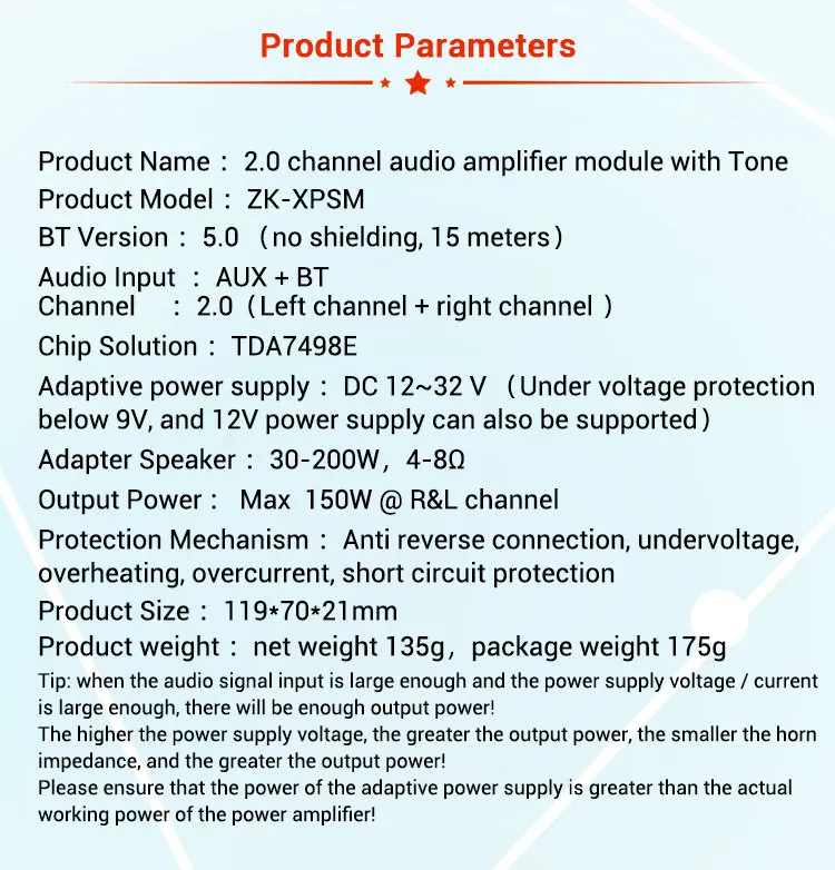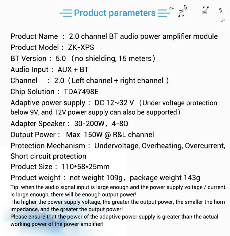 Product Name: Dual channel BT 5.0 power amplifier board