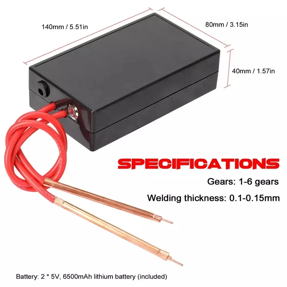 Comes with high rate lithium battery, and it can continuously welding thousands of points on 0.1-0.15mm nickle sheet after being