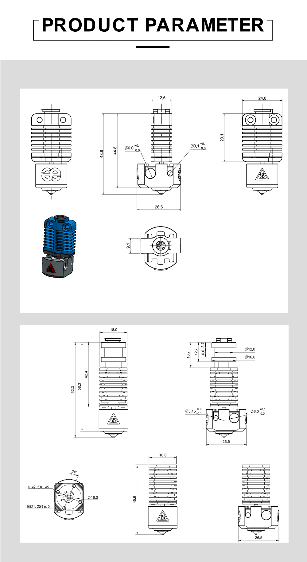 Dragonfly Hotend BMO BMS Bi-metal Heat Break Plated Copper Dragon Titan DDB Extruder 3D Printer Parts For Ender 3 V2 CR10 customize
