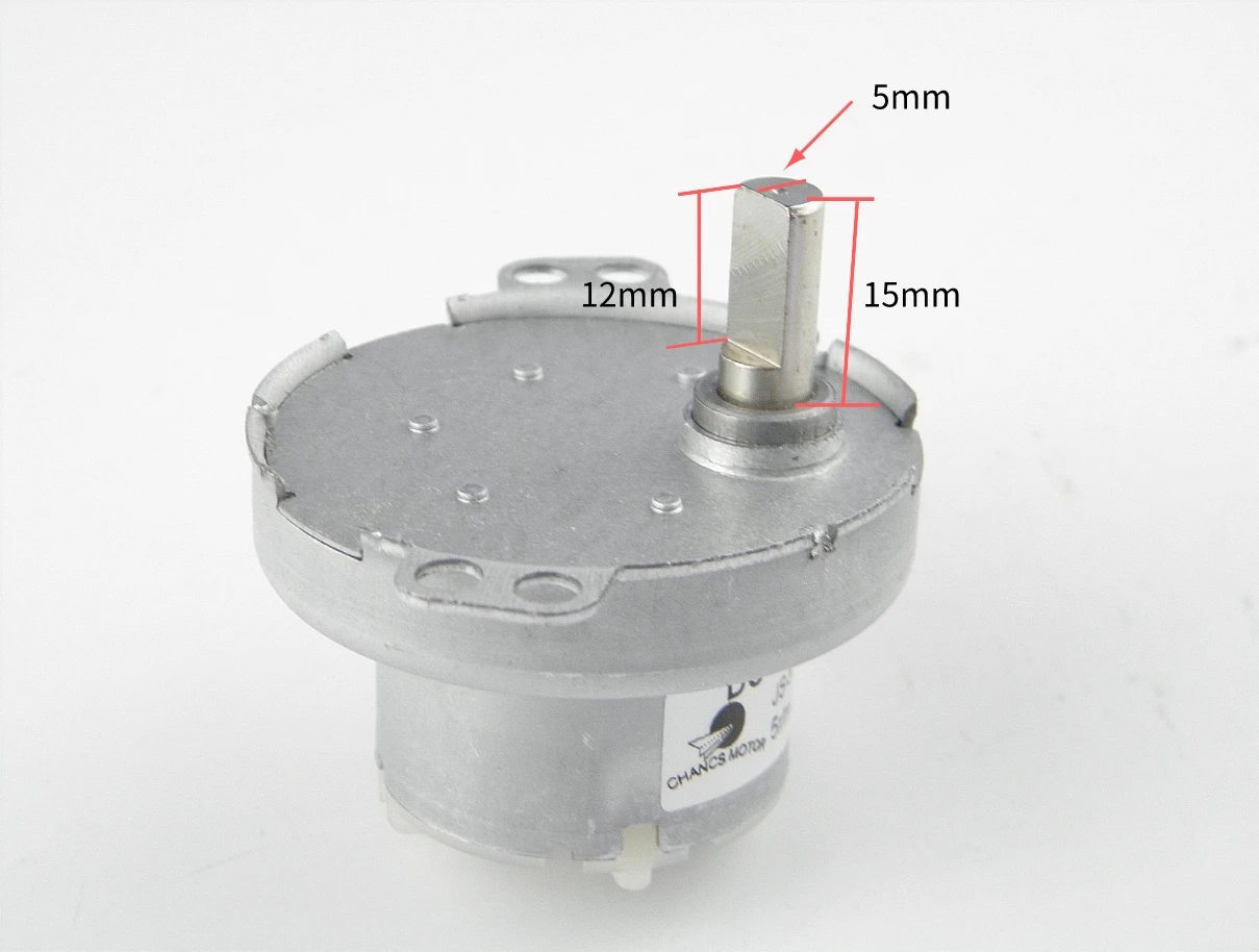 [Specification:]Shaft Diameter: 7mm (0.28"); Shaft Length: 15.5mm(0.61")/15mm (0.59"); Shaft Thread Hole Inner diameter: φ3.4mm (M4); Size: 50*50*34mm (1.97"*1.97"*1.34"); Working Voltage: DC 5V; No-Load Current: 20mA; Speed: 2r/min; Power: 1-2W; Rotation: CW/CCW There is a slight discrepancy in measurements, please check before ordering!!