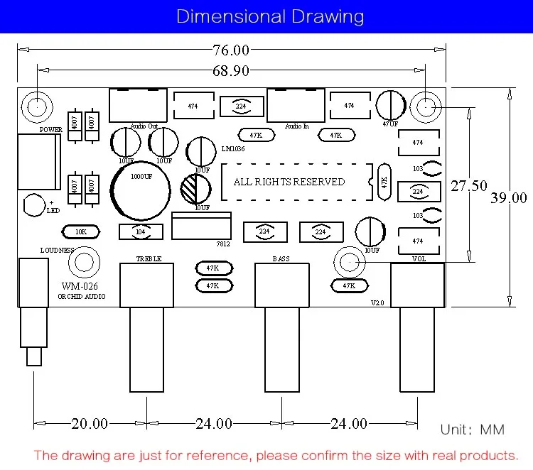 LM1036 OP-AMP HIFI Pre Amplifier Preamplifier Volume Tone Treble Bass Loudness Control audio amplifier board Preamp pcb assembly customize
