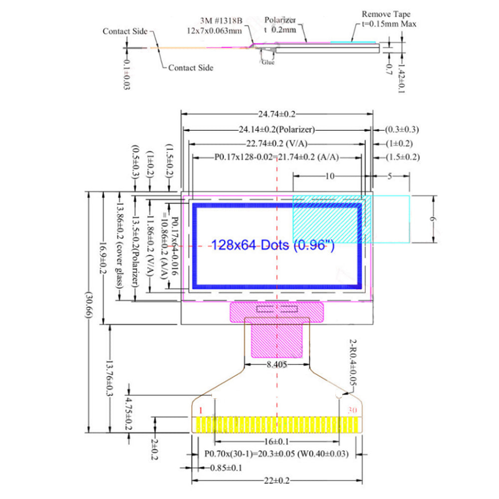 Number of pins: 30pin (soldering 30pin, 0.7mm pitch)