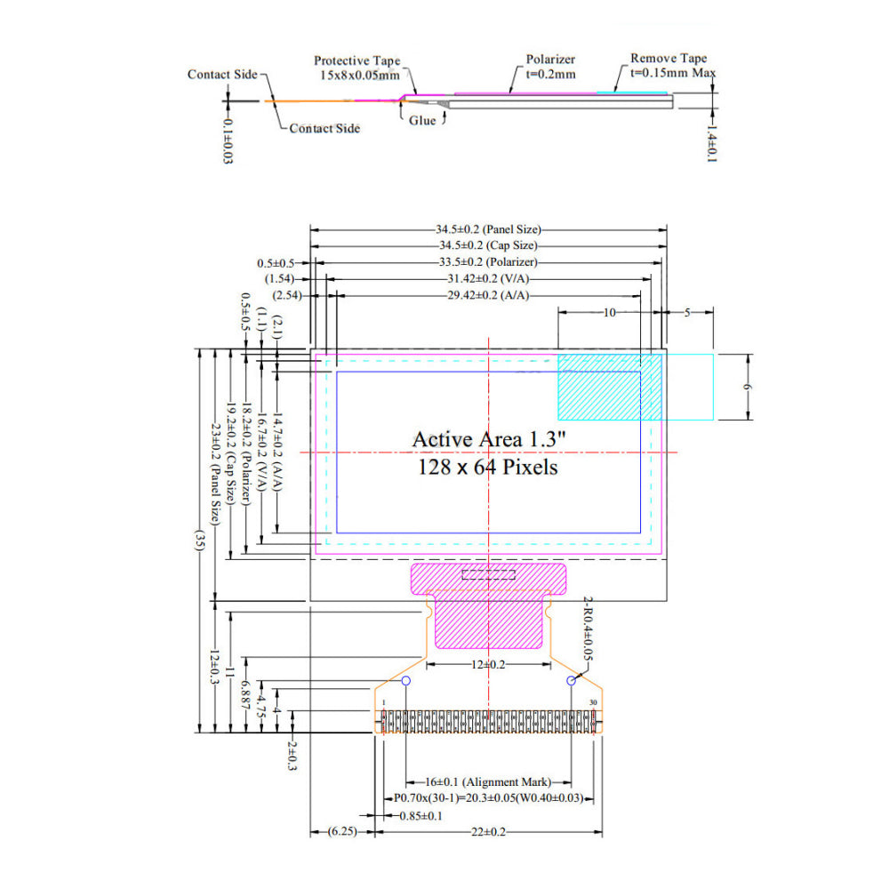 LONTEN 1.3 inch 128*64 OLED screen 12864 LCD white screen 30pin SH1106G screens Custom