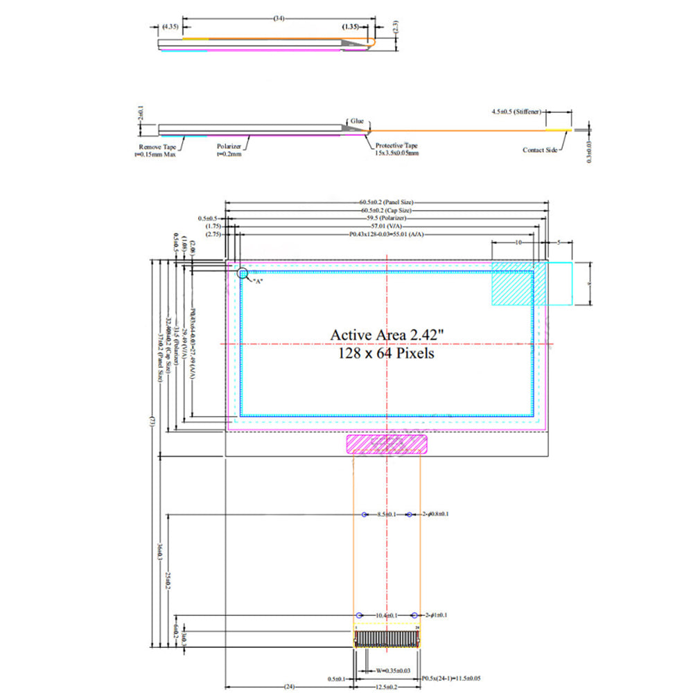 LONTEN 2.42 inch OLED LCD screen 128*64 SPI/IIC interface SSD1309 driver white screen display 24pin FPC screens Custom