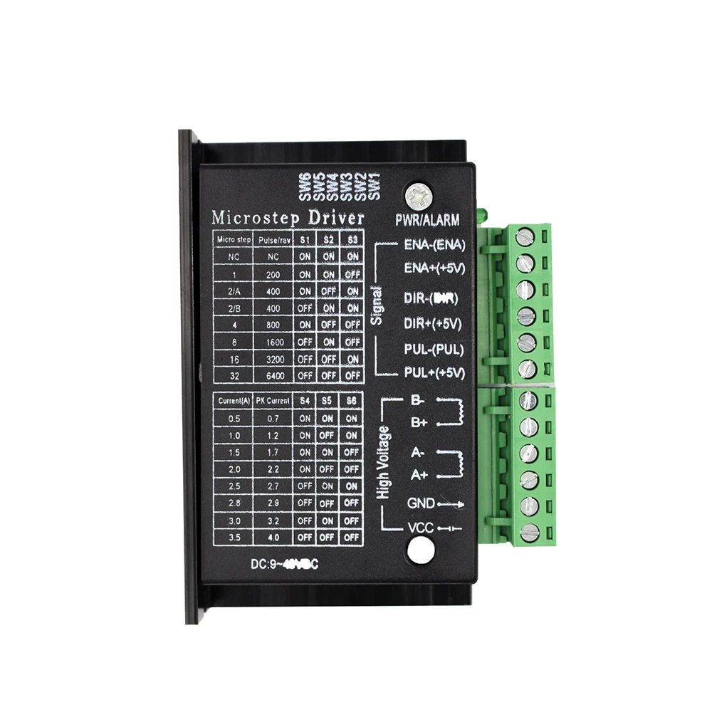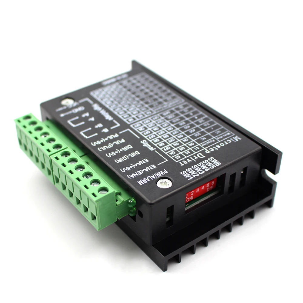 Introduction:The upgraded version of TB6600 is a driver suitable for 57/42 type two-phase hybrid stepping motor with phase current below 4.0A.Set 7 kinds of subdivisions (1/2A/2B/4/8/16/32) through 6-bit DIP switchAnd 8 gear output current (0.5A/1.0A/1.5A/2.0A/2.5A/2.8A/3.0A/3.5A)Widely used in various small and medium-sized automation equipment and hardware,Such as: engraving machine, marking machine, cutting machine, laser phototypesetting, plotter, CNC machine tool, crystal grinding machine, automatic assembly equipment, etc.The best application object is 57 stepper motors and 42 stepper motors with a torque of 1.8N.m and below. -