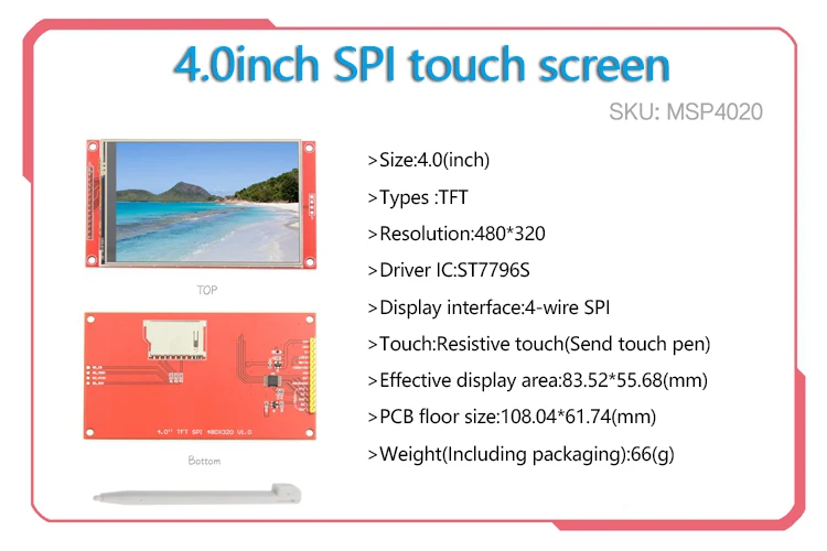 Porta seriale SPI seriesctouch 2.2/2.4/2.8/3.2/3.5/4.0 pollici modulo schermo LCD TFT per scheda di sviluppo Arduin0 stm32 Custom Manufacturers