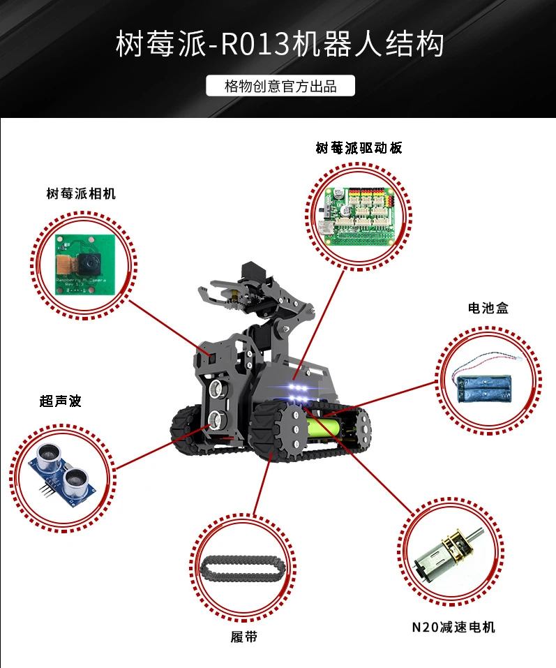 Professional R & D Manufacturer Steam Raspberry Pi Tank WiFi Camera AI Video Crawler Robot customize