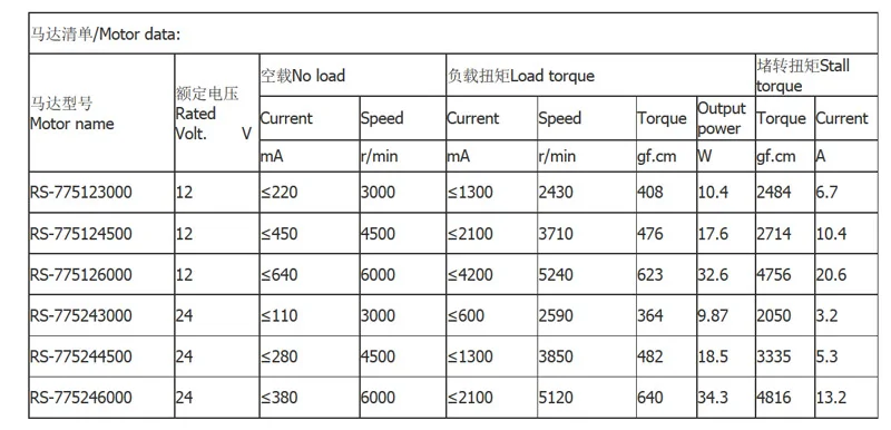 Custom RS 775 motor DC 12V 24V double Ball Bearing 3000rpm4500rpm6000rpm8500rpm10000rpm RS775 Large Torque Low Noise Manufacturer