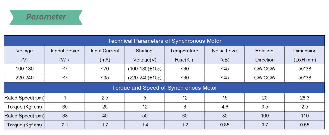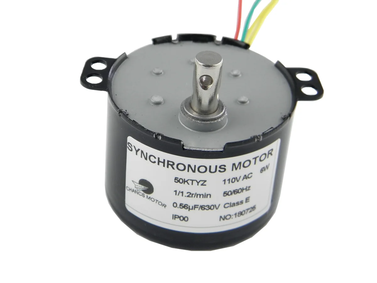It is a claw pole type permanent magnet synchronous motor with internal speed reduction mechanism which can control the shaft rotation and it operates on AC 110-130V.