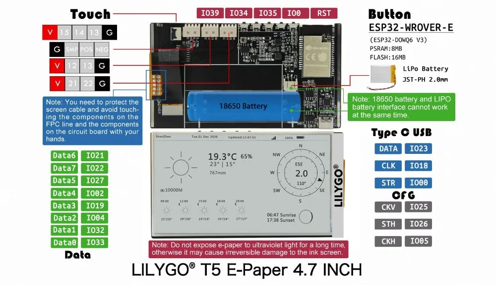 LILYGO T5 4.7 inch E-Paper motherboard parameters: